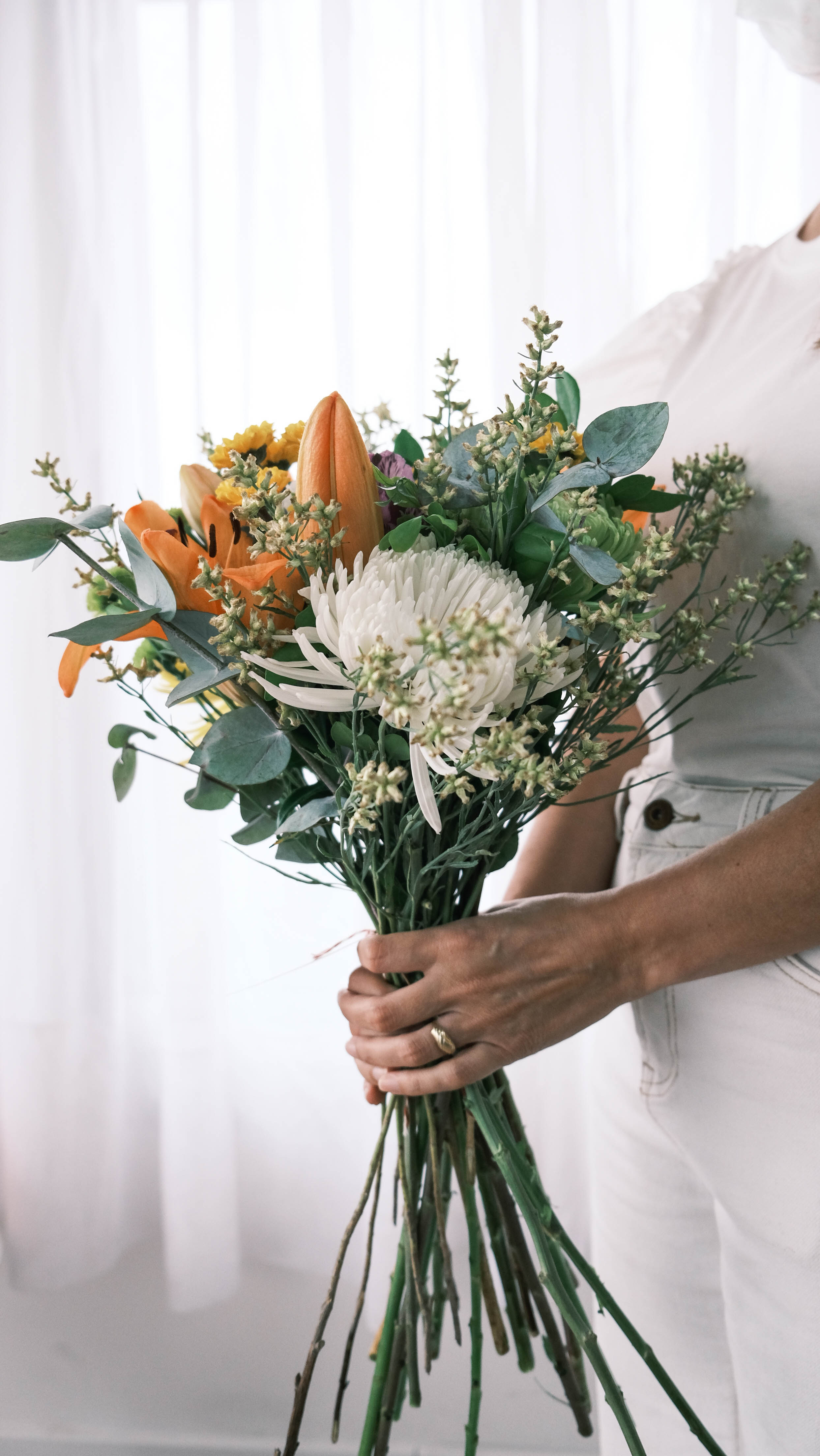 Cada arreglo se realiza con flores frescas de estación, cuidadosamente combinadas para mantener la armonía, el color y la estética característica de Amarte Así.