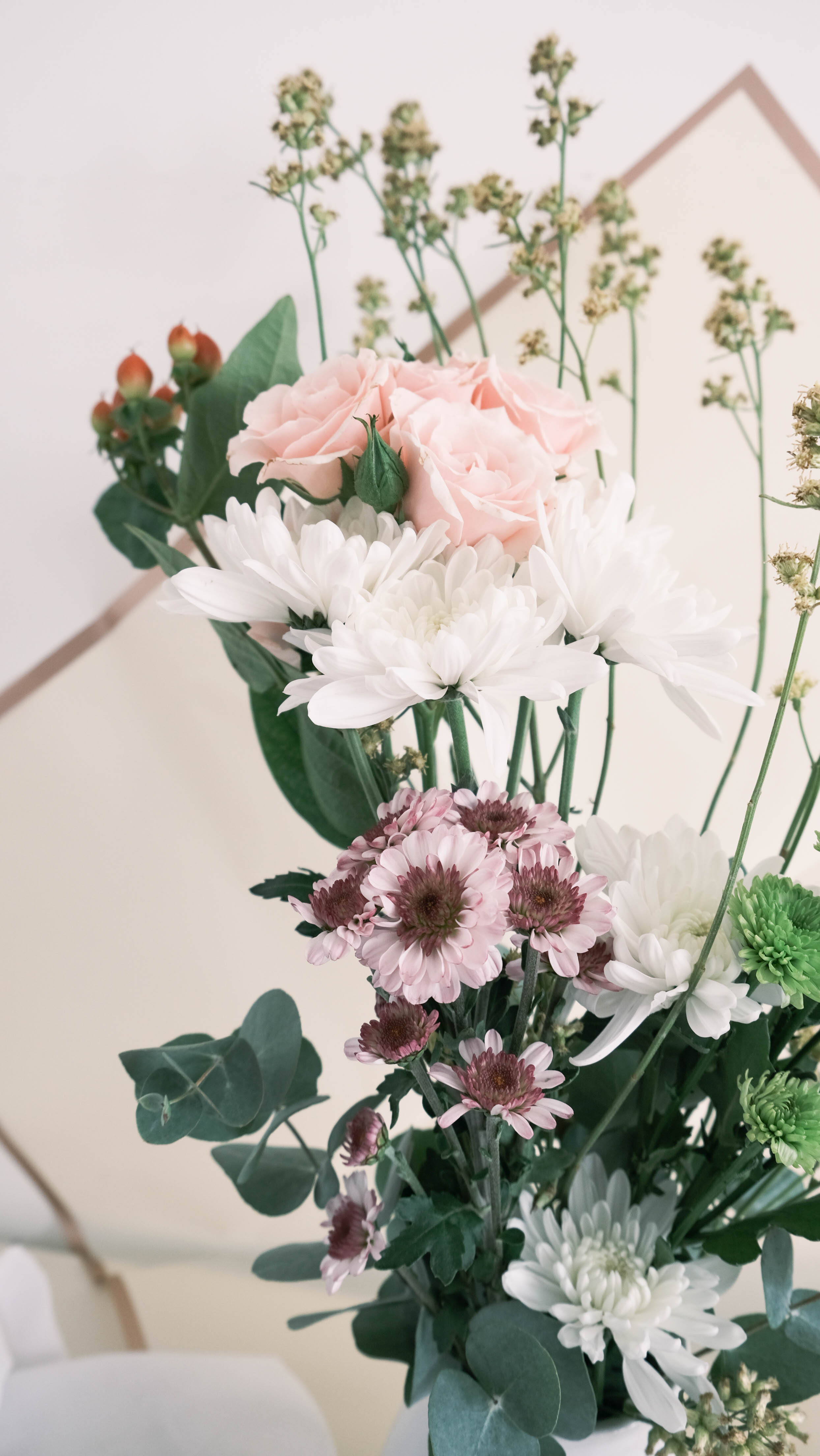 Bernardina es un arreglo que destaca por su sutileza y encanto cuidado. Con flores de estación seleccionadas cuidadosamente, esta composición armoniza textura y matiz para brindar elegancia a espacios íntimos y sofisticados: un escritorio, una mesa de café, o un rincón en la recepción de tu empresa.