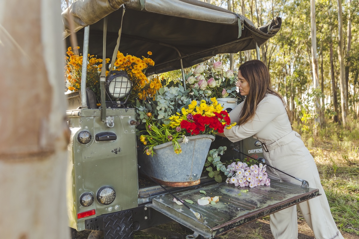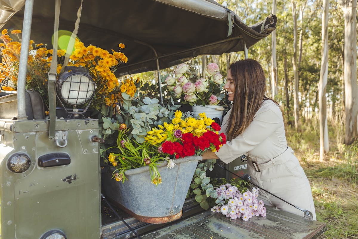 La versatilidad del vehículo permite múltiples composiciones: desde escenas en su parte trasera, como flower truck o espacio de armado, hasta tomas más abiertas integradas con el paisaje. Es un recurso ideal para crear imágenes cálidas, orgánicas y con identidad.